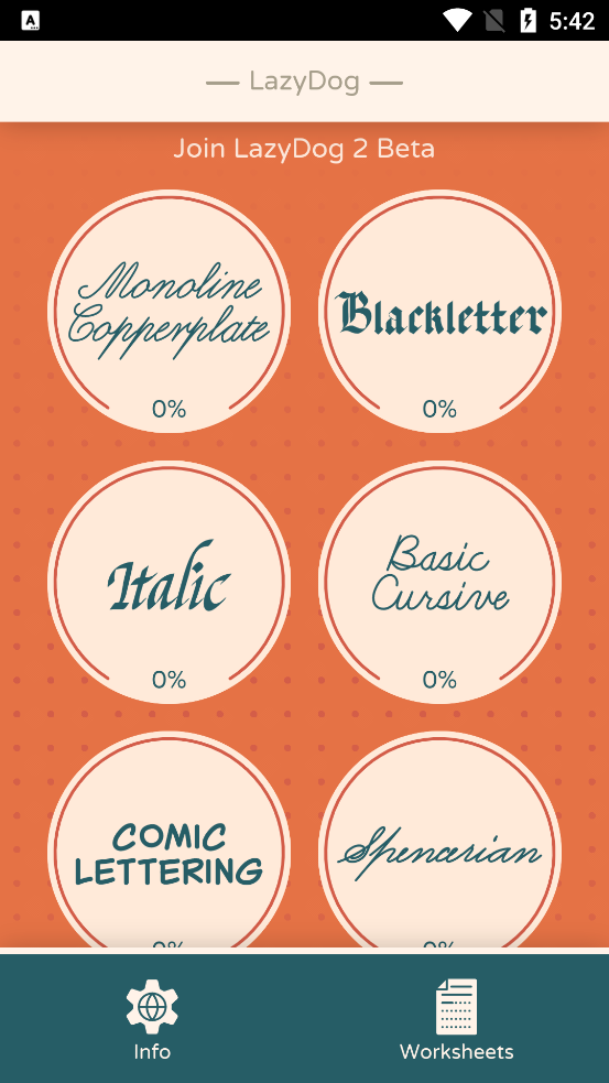 lazyDog书法练习app最新版是专为用户打造的专业书法练习软件。在这里,用户可以练习基础的草书.圆体.哥特式脚本.斜体等多种书法风格,让您的英文书写更加美观。有需要的用户赶紧来本站下载吧。