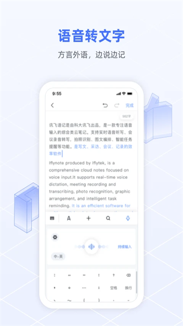 依托科大讯飞领先的语音技术,支持四川话、英语等多方言多语种输入,让你毫不费力地记录生活。