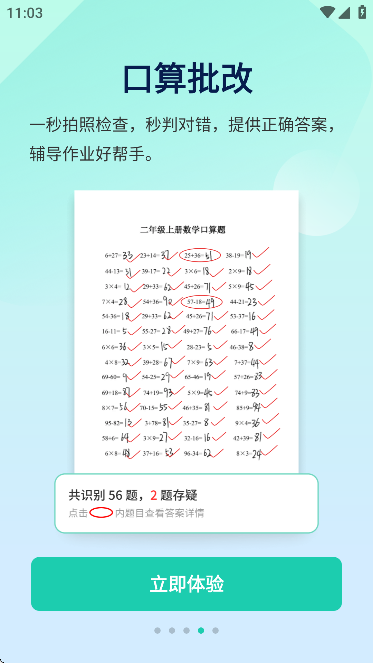 可快速批改孩子的数学计算作业,一秒给出错题与答案讲解,方便家长批阅与讲解。