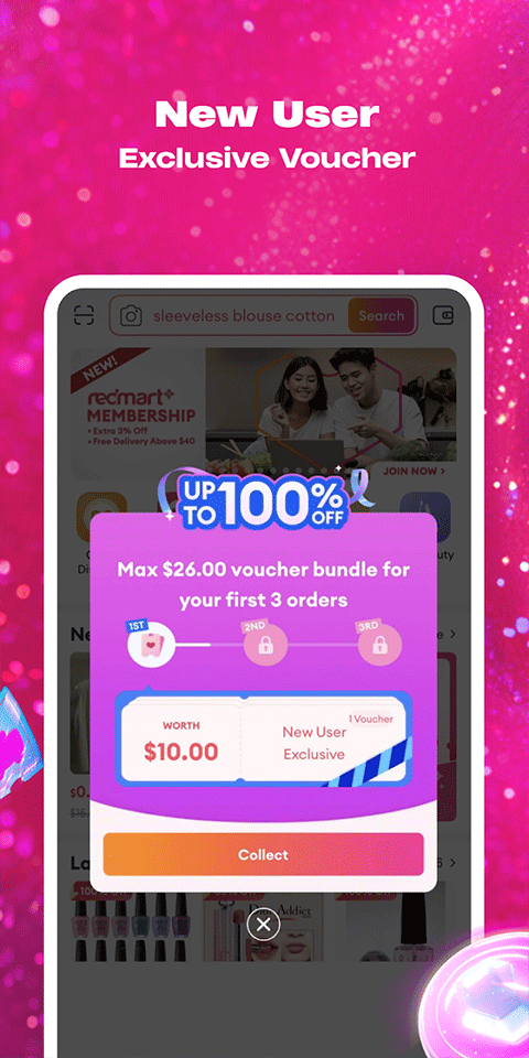 首次购买可获得独家优惠券。每天办理登机手续时获取硬币,每次使用Lazada应用程序时从Lazada和Sellers收集代金券!