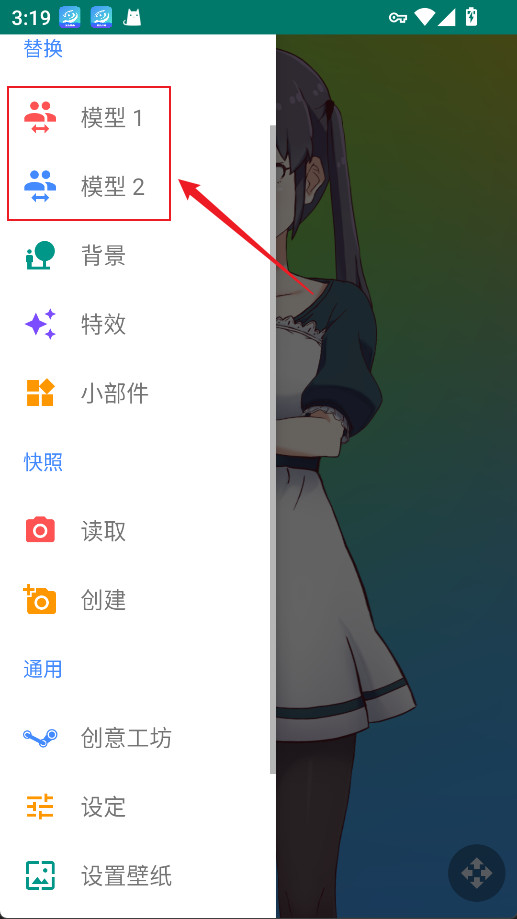 3、很多动漫人物都有很好的模型,可以很方便的下载到安卓手机上使用,可以做成壁纸。
