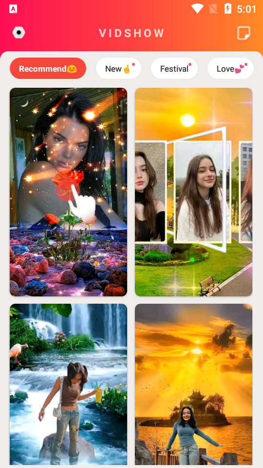 作为一个视频编辑应用程序,将多张照片合并成一个视频对我们来说是必不可少的。用户可以从不同的相册中选择多张照片来创建独特的外观,并将其放入音乐视频编辑器和制作工具C视频显示中。只需选择一张照片;该应用程序会将用户安排到一个完整的视频中。
