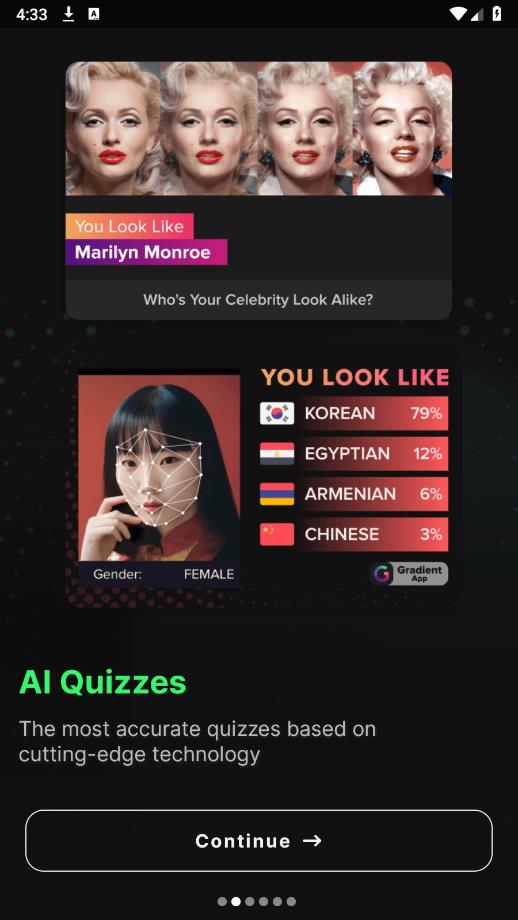 1、AI 人脸拼贴:渐变 AI 人脸拼贴出来了!使用以下独特的人工智能功能找到您来自亚洲、巴西、印度和欧洲的双胞胎!成为第一个查看 Gradient 令人兴奋的新技术的人!