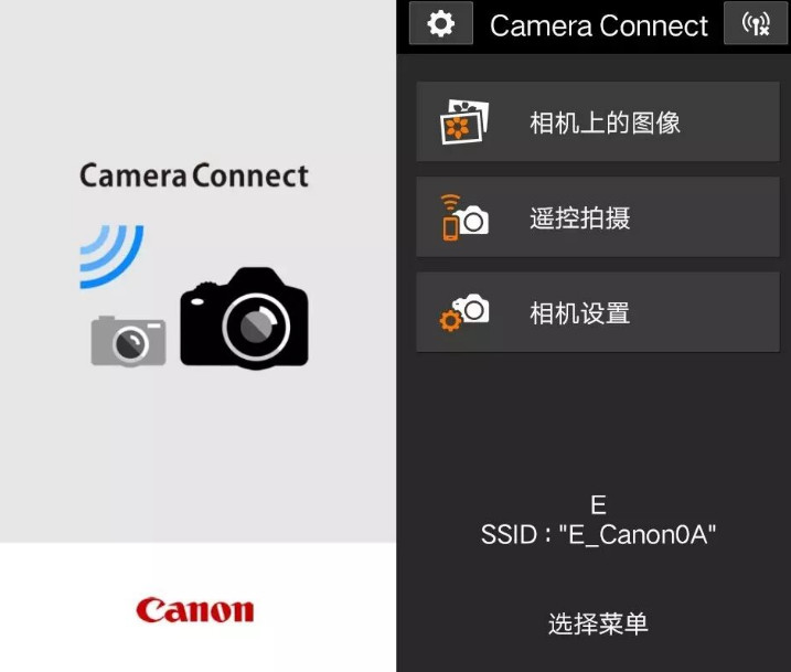 这时相机屏幕上就会出现用于在智能手机上进行Wi-Fi连接的SSID(即Wi-Fi账号)和密钥(即密码)。例如相机上显示:SSID:E-Canon0A 密钥:12345678(注:E是你给相机取的昵称,Canon0A是相机自带的后缀名称)。