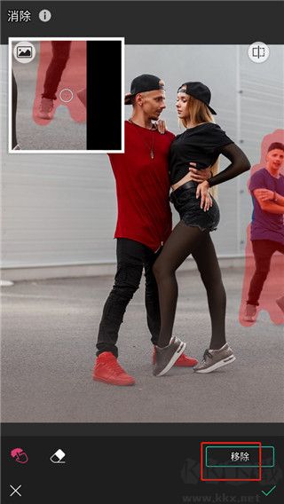 6、修复部分设备使用物体移除工具时,移除痕迹明显的问题,现在用手指移除不需要的背景后,画面过渡更自然。