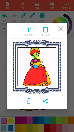 3、作品完成后,软件支持一键保存和分享功能,孩子们可以将自己的画作保存到相册,或者分享给亲朋好友,展示他们的创意成果。