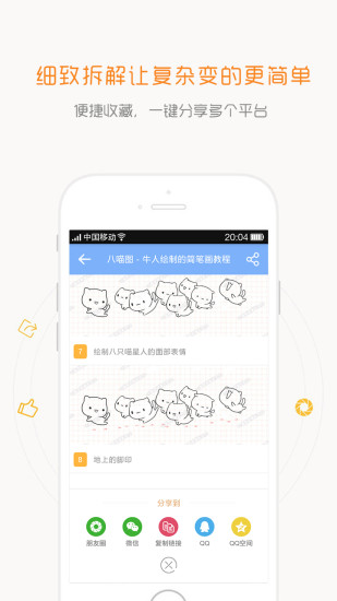 1、碎沫简笔画的亮点之一是其强大的社交功能,用户可以将自己的作品分享到社交平台,与更多的人交流创作心得。